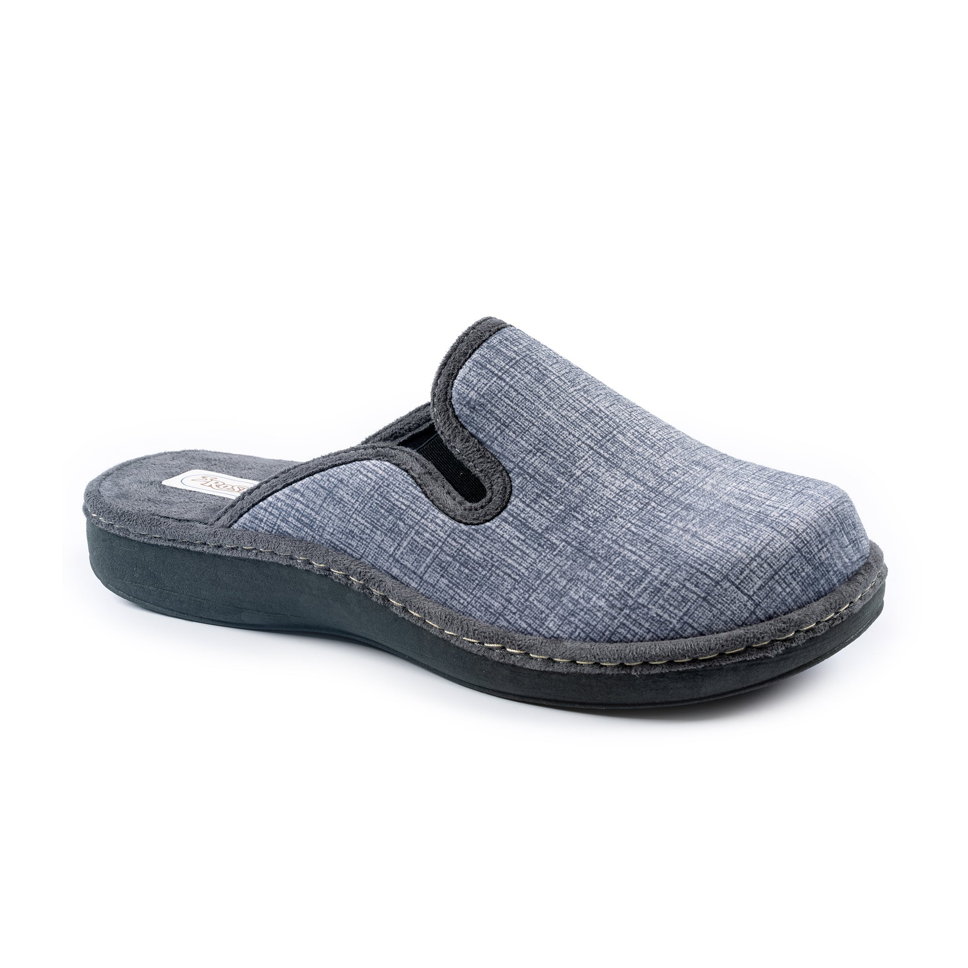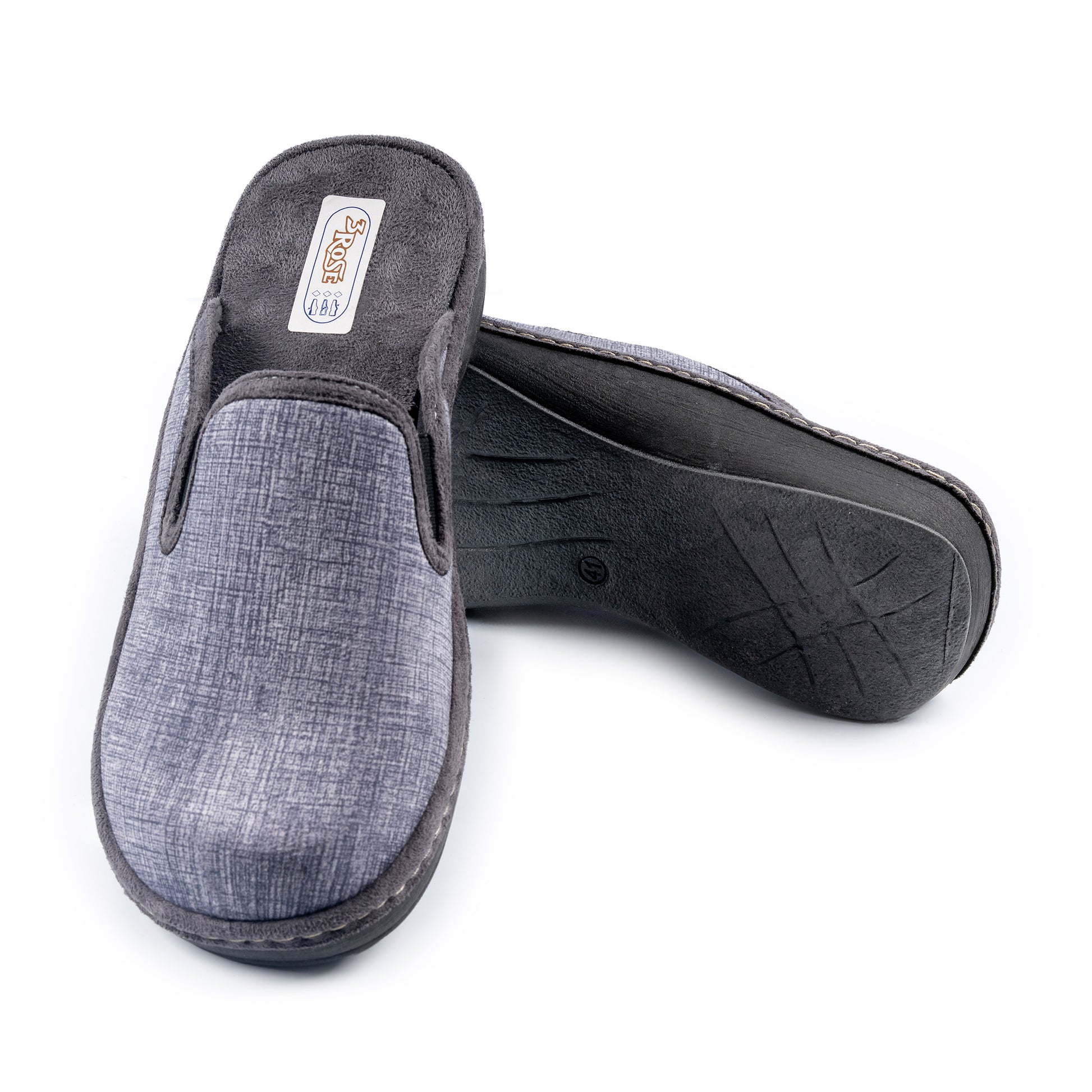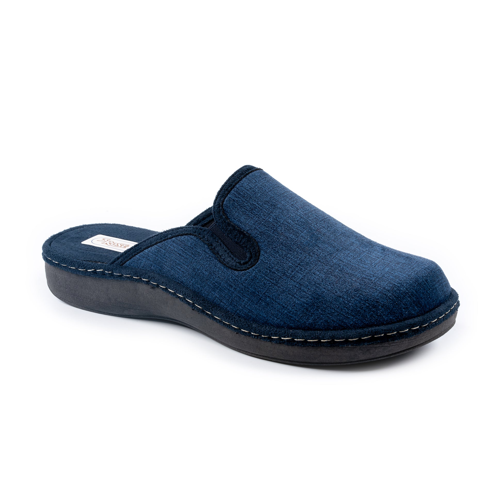 Confortevole e pratica, la ciabatta con tomaia in velluto imbottita è adatta per l'inverno, con doppio elastico laterale offre una calzata sicura e comoda. La fodera in feltro e il morbido sottopiede estraibile in velluto assicurano comfort per tutto il giorno con la possibilità di sostituirlo con uno vostro ortopedico. La suola antiscivolo e la zeppa da 3,5 cm garantiscono stabilità e leggerezza. Disponibile nei colori blu e grigio.