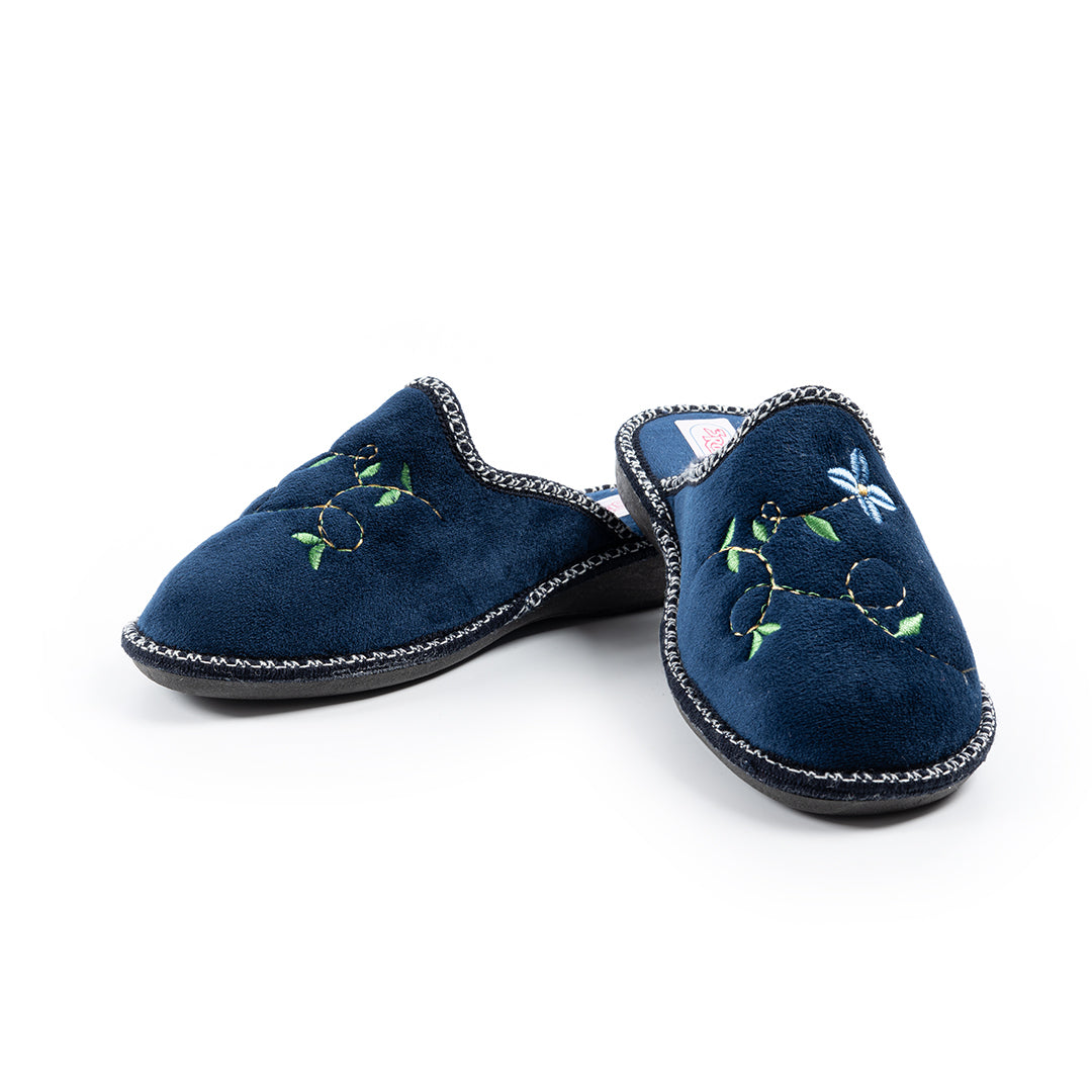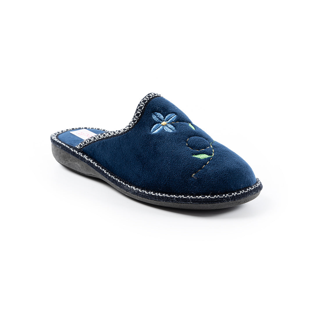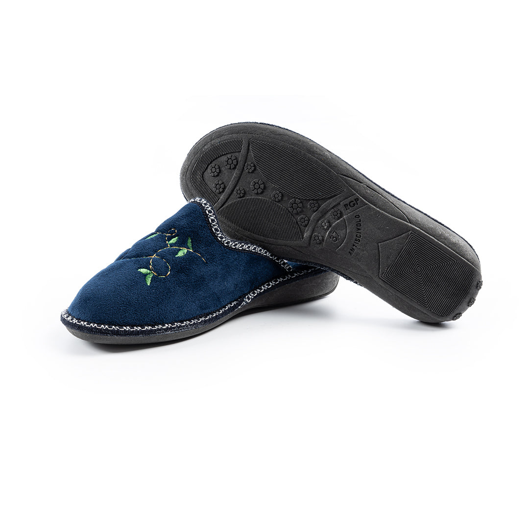 Calda e comoda, la ciabatta con tomaia in microfibra imbottita con riporto floreale è perfetta per i mesi invernali. La fodera e il sottopiede in feltro offrono comfort e morbidezza mentre la suola antiscivolo garantiscono stabilità. Tacco 1.5 cm. Disponibile nei colori blu, bordeaux.