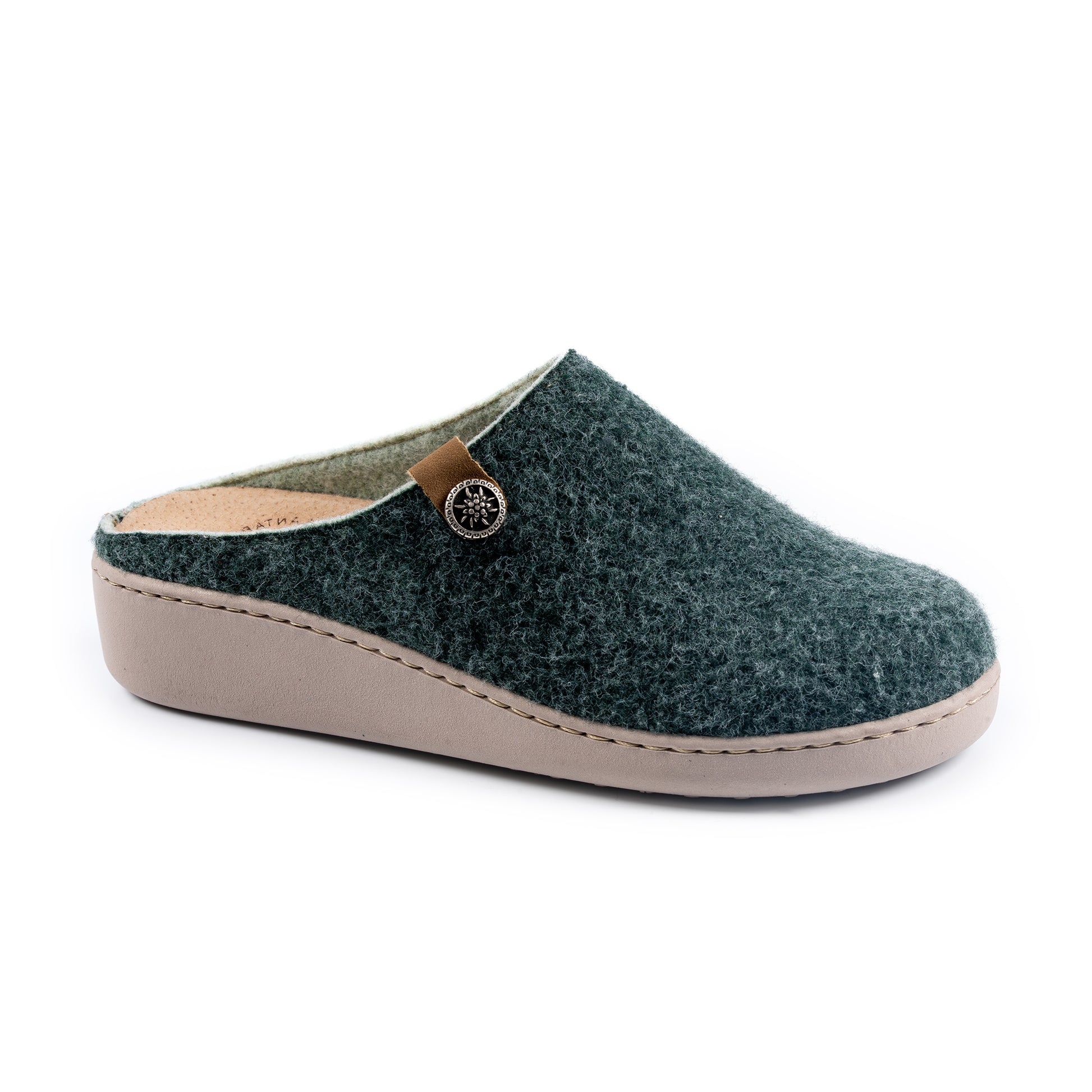 Elegante e calda, la ciabatta con tomaia in lana cotta mantiene i piedi al caldo con stile. Il plantare anatomico estraibile e il sottopiede in vera pelle offrono un supporto ideale, mentre la suola antiscivolo e la zeppa da 4 cm assicurano stabilità e comfort durante tutto il giorno. Disponibile nei colori Blu, Verde, Viola.