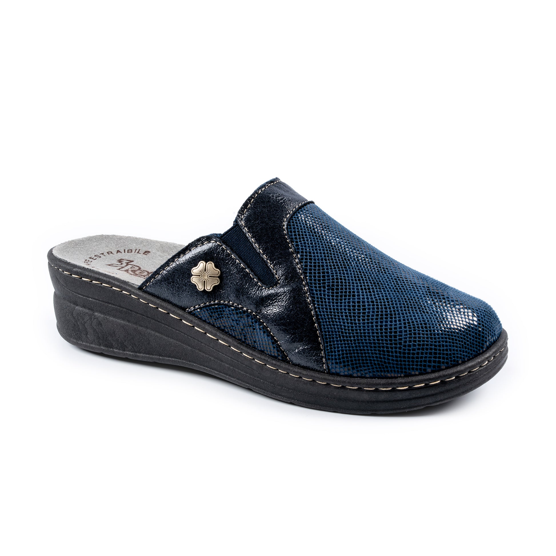 Comoda e pratica, la ciabatta con tomaia in microfibra elasticizzata e traspirante offre comfort duraturo. La fodera in licra con doppio elastico laterale garantiscono una calzata sicura. Il plantare anatomico estraibile dove è possibile sostituirlo con un vostro plantare ortopedico e il sottopiede in vera pelle offrono supporto, mentre la suola antiscivolo e il tacco da 4,5 cm assicurano stabilità e leggerezza. Disponibile nei colori blu, tortora e bordeaux.
