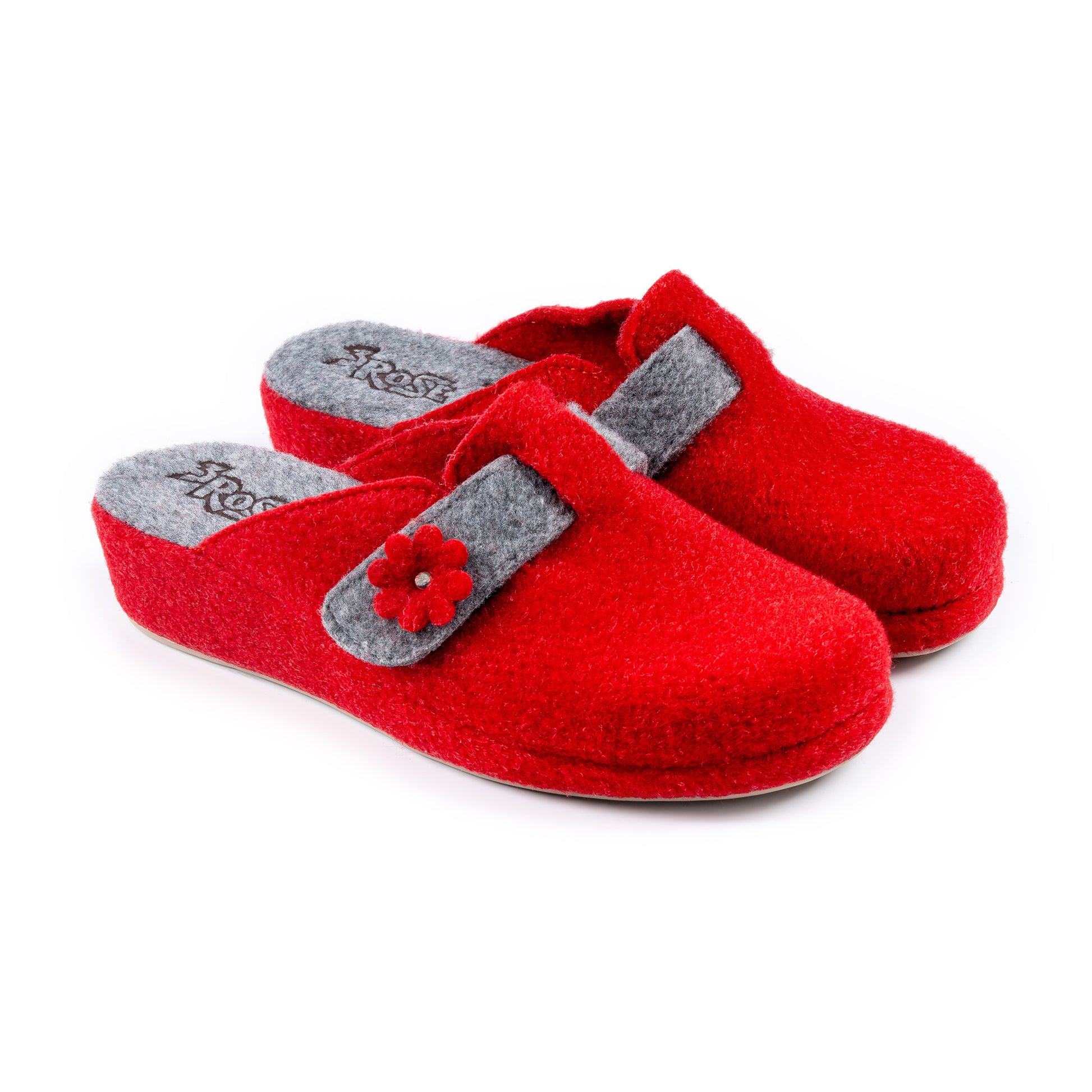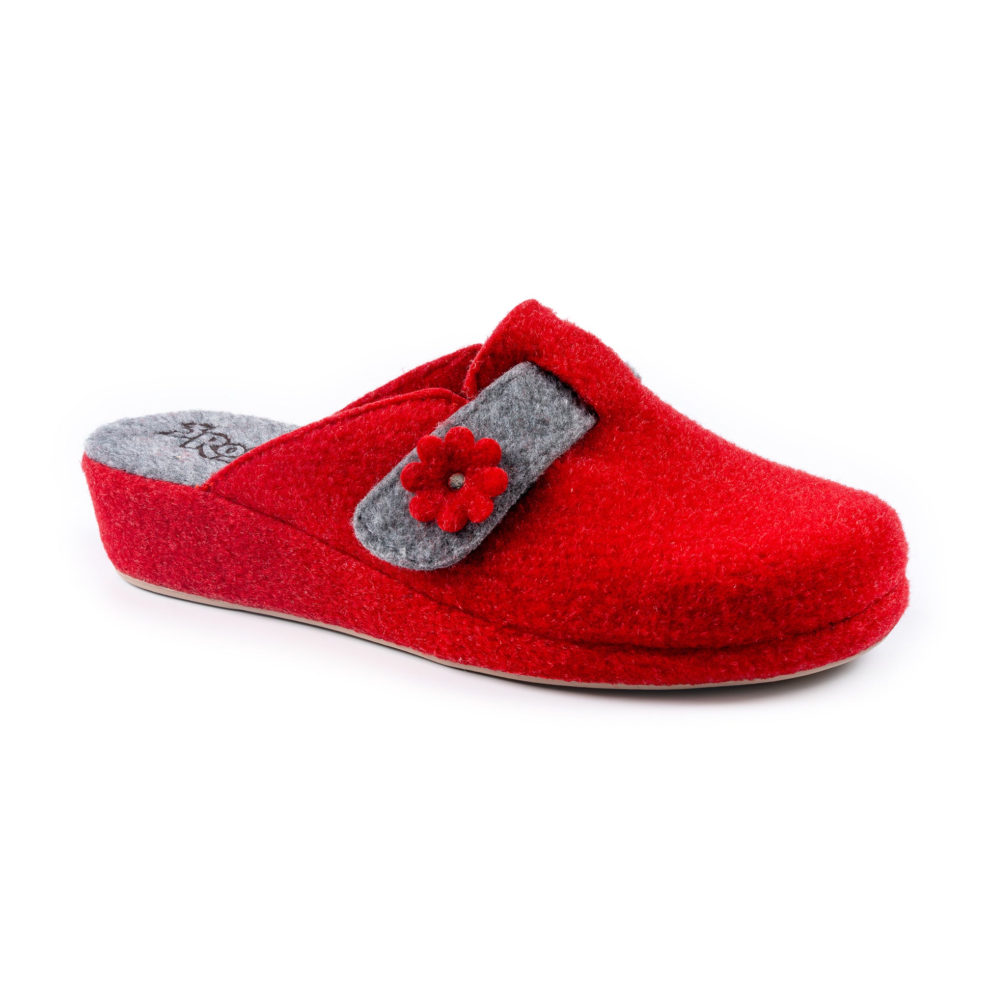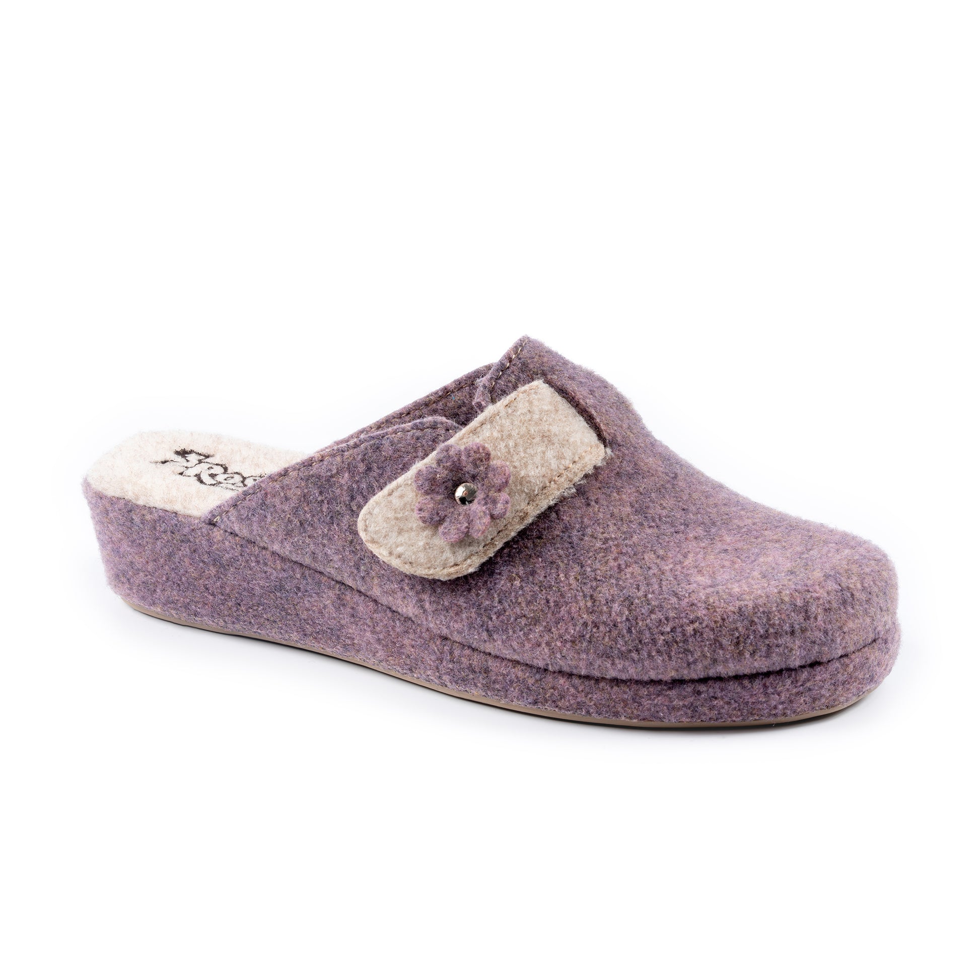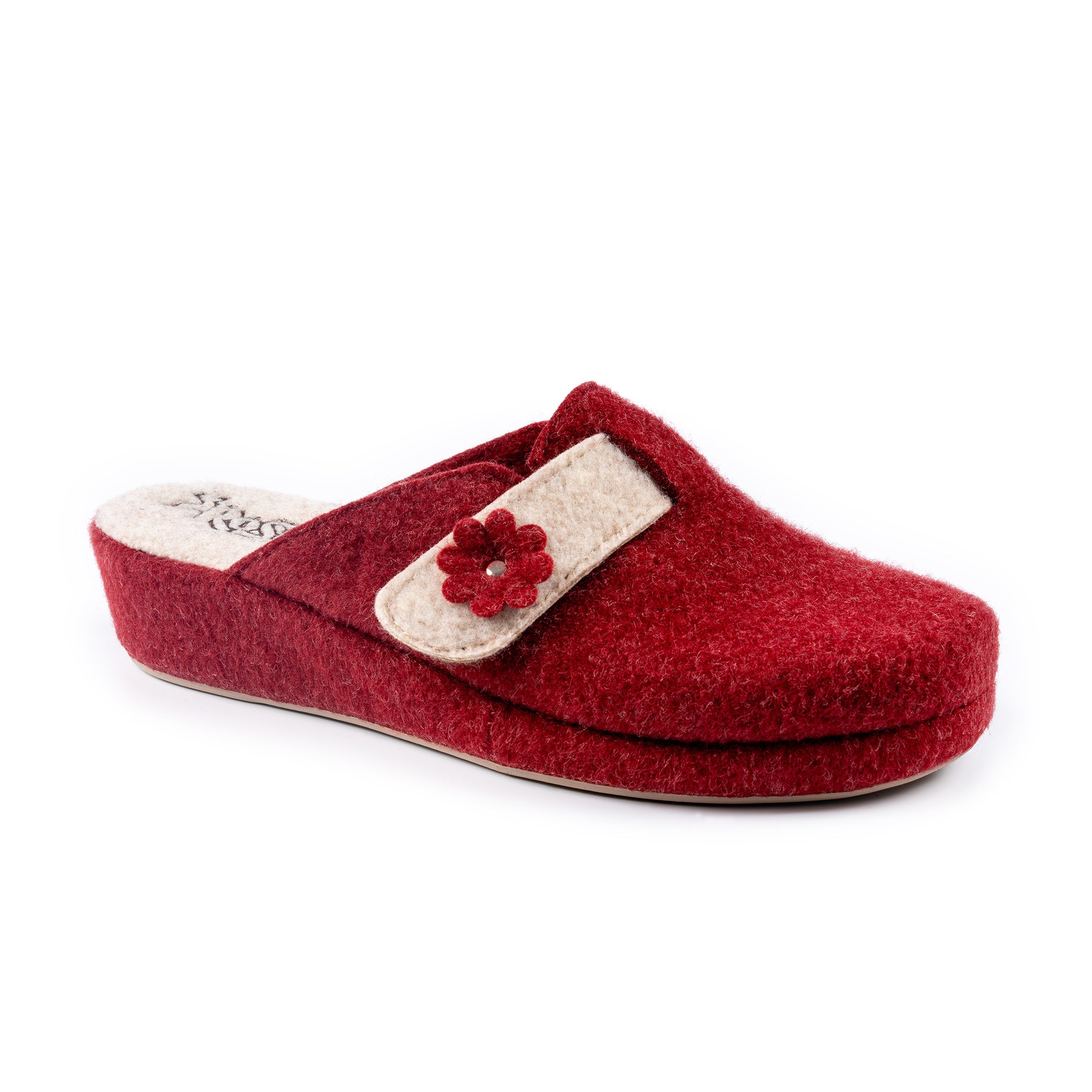 Calda e comoda, la ciabatta con tomaia in feltro e riporto floreale è perfetta per i mesi invernali. La zeppa in sughero rivestita in feltro e il sottopiede in feltro offrono comfort e supporto, mentre la suola antiscivolo e la zeppa da 3,5 cm garantiscono stabilità e sicurezza in ogni passo. Disponibile nei colori rosso, lavanda, bordeaux.