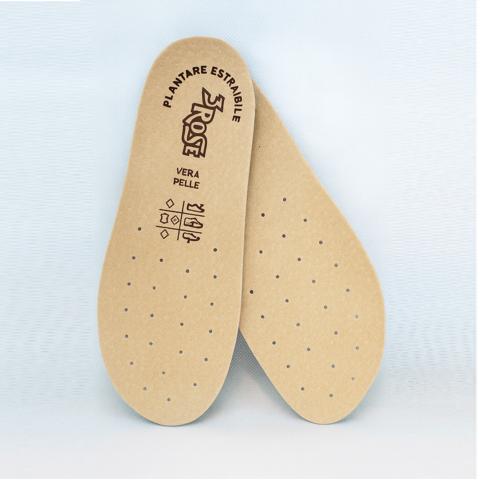 Il plantare estraibile 3 Rose in vera pelle garantisce comfort, igiene e sostegno in ogni momento della giornata.